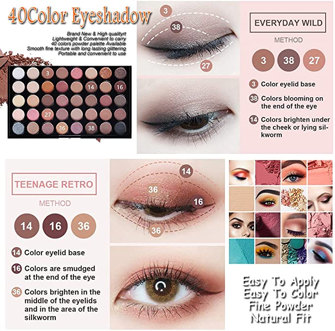 Mix and match, combine colours and styles for all sorts of occasions, make it easy to create a vibrant look. It is perfect for any skin tones, various seasons and for creating any full face look, Perfect for holiday parties and daily makeup.